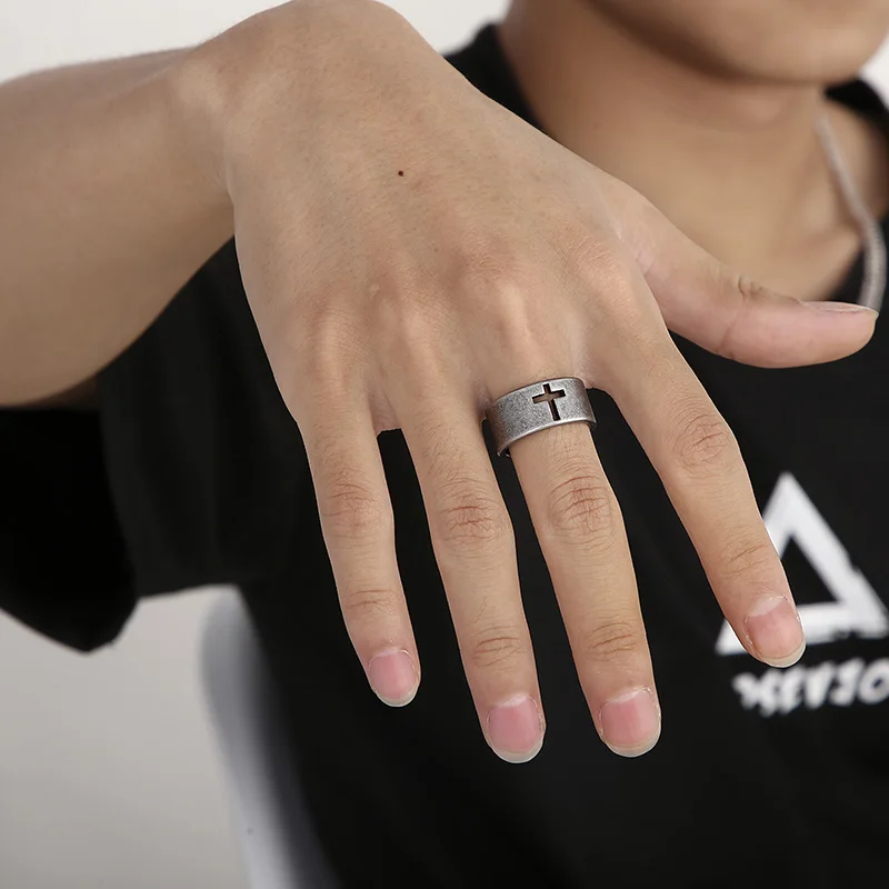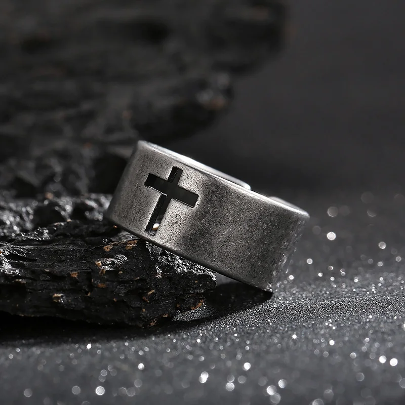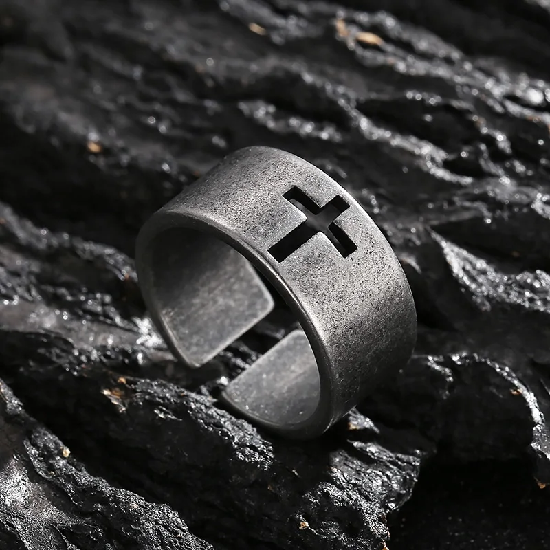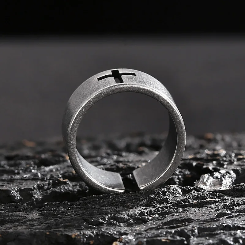 Viking Style Silver Ring with Cross Cutout - Fashion Jewelry Ring